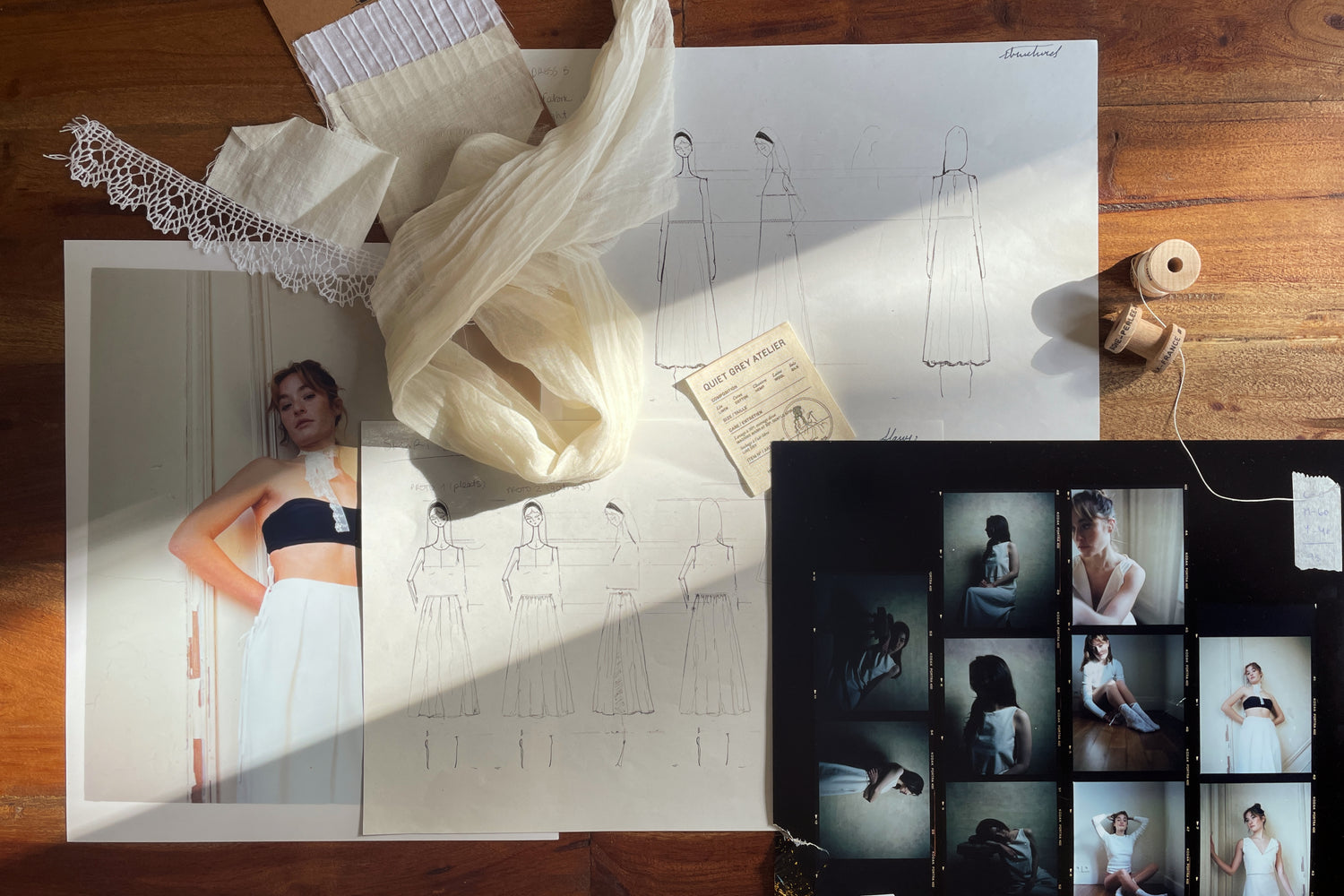 All the designs were made by us, gathering inspiration from fashion shows, photographs, and cool people on trains. We designed only what we found interesting, challenging and beautiful. In short, without any concern for trends or fashion seasons, we designed garments we wanted to wear and that respected the delicacy of the fabric.